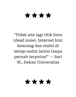 Solusi infrastruktur jaringan dan server profesional dengan standar global. Menghilangkan titik buta sinyal (dead zone) demi konektivitas tanpa batas bagi Bisnis Anda!